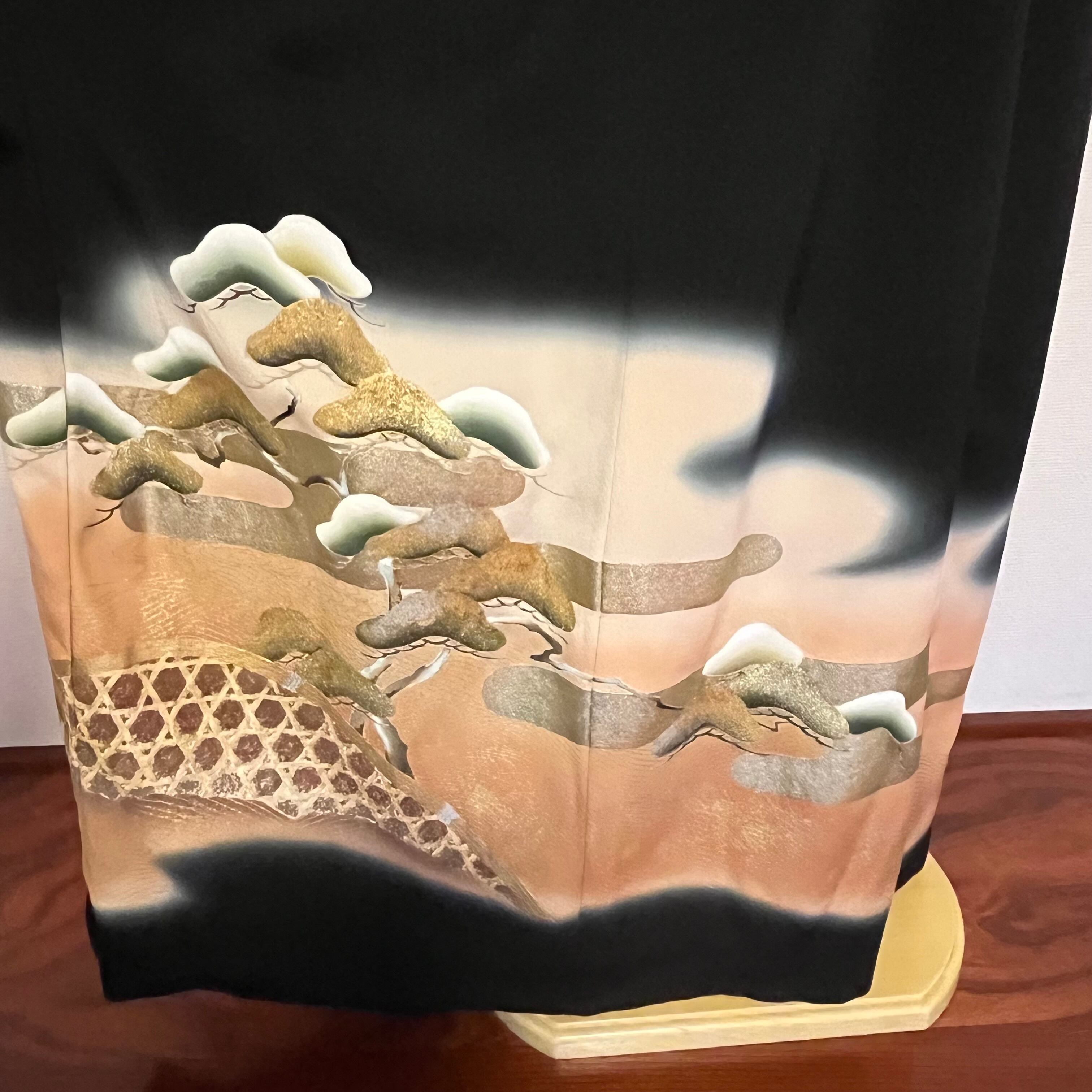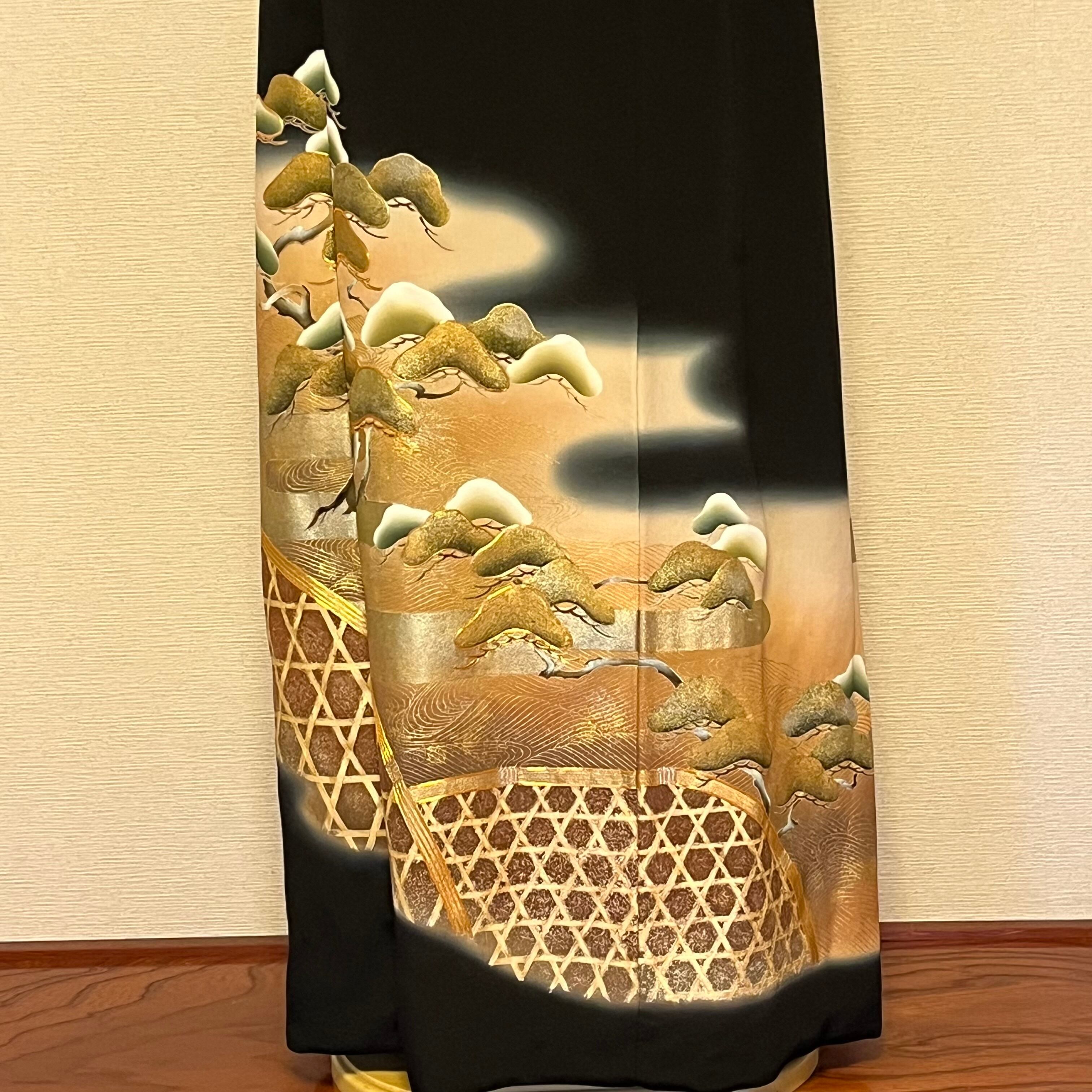 光琳松と魔除の籠目、エ霞、流水文様の吉祥文様