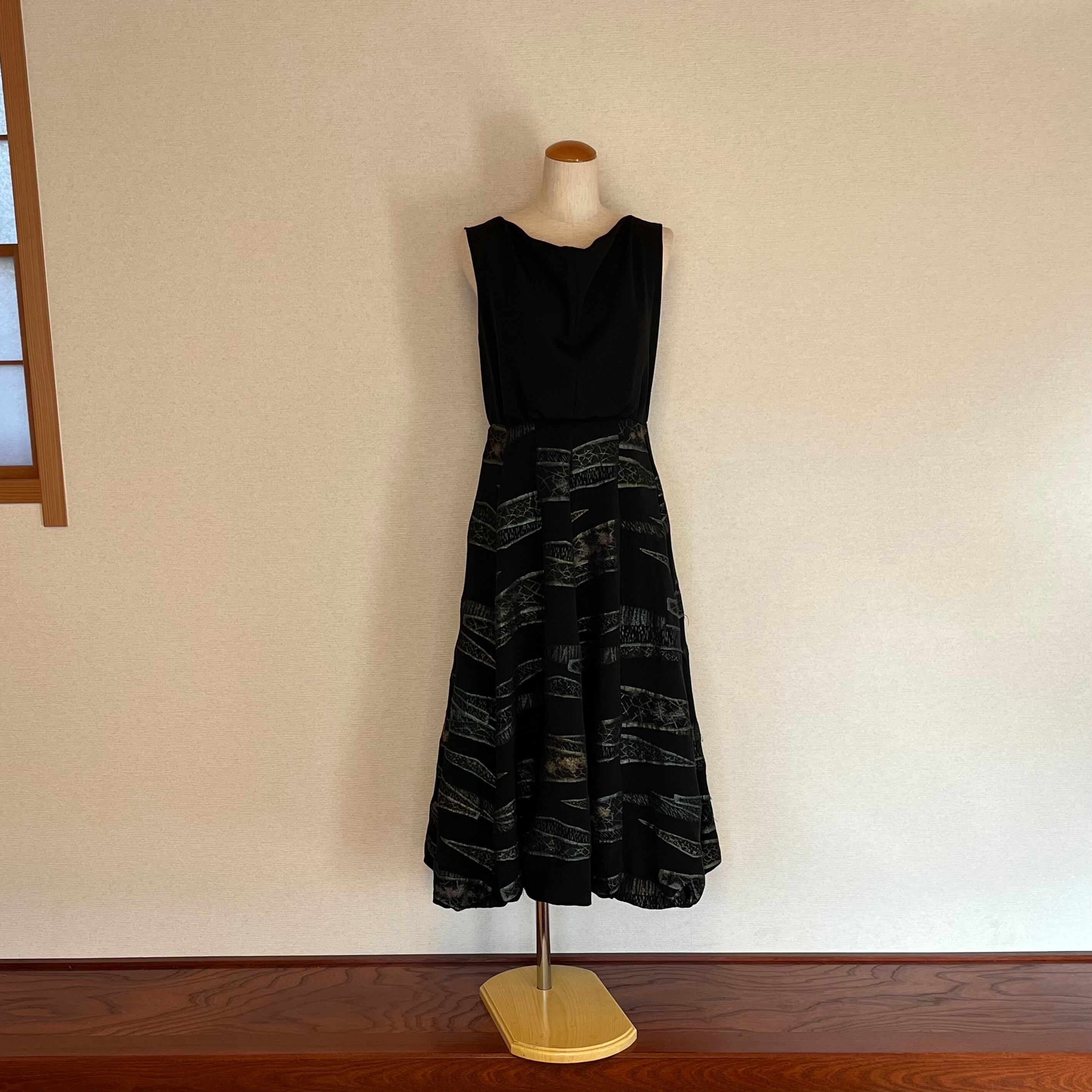 美しい銀ラメが贅沢に施されたバルーンスカートのワンピースです。