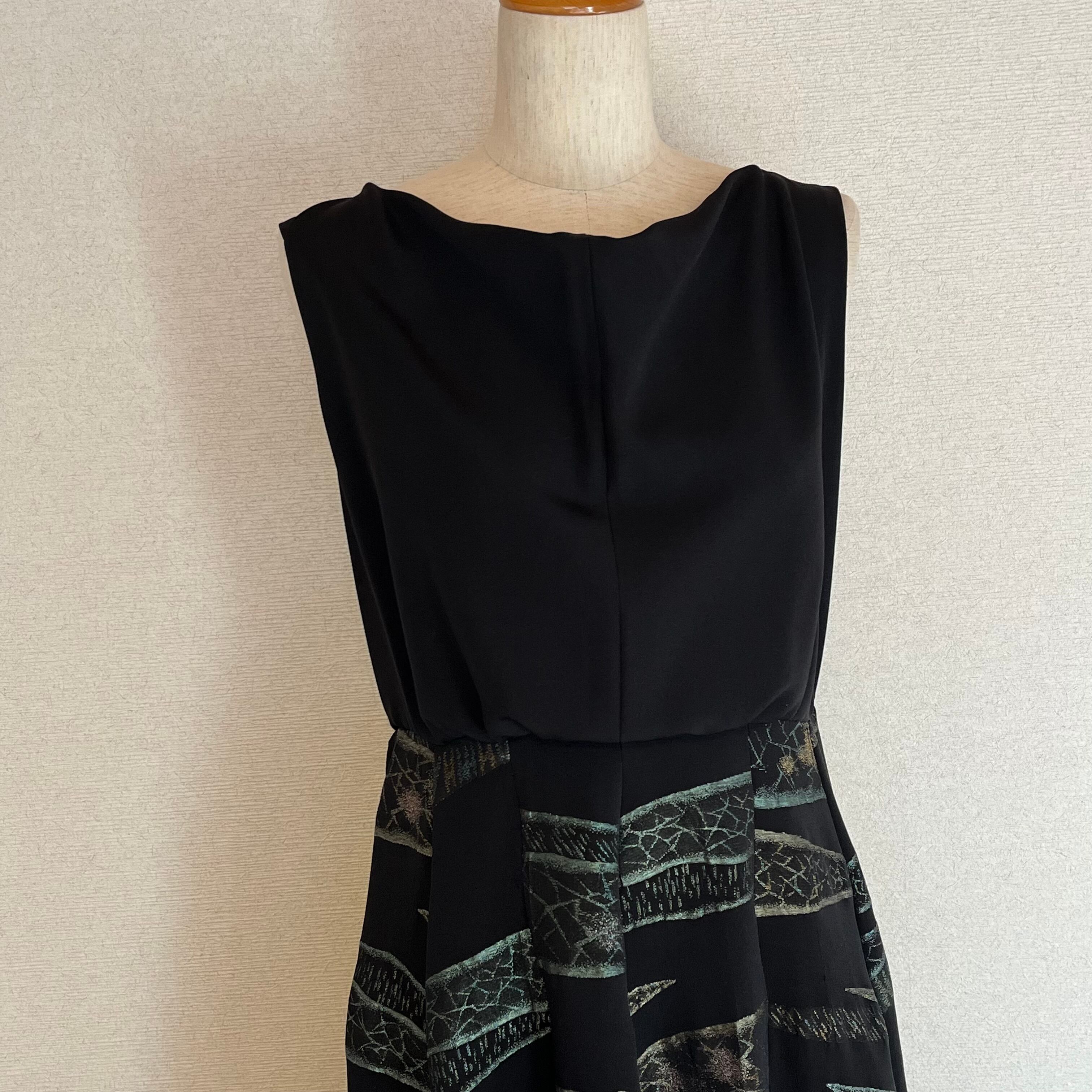 胸元ドレープ ノースリーブ 銀ラメバルーンワンピースM〜L