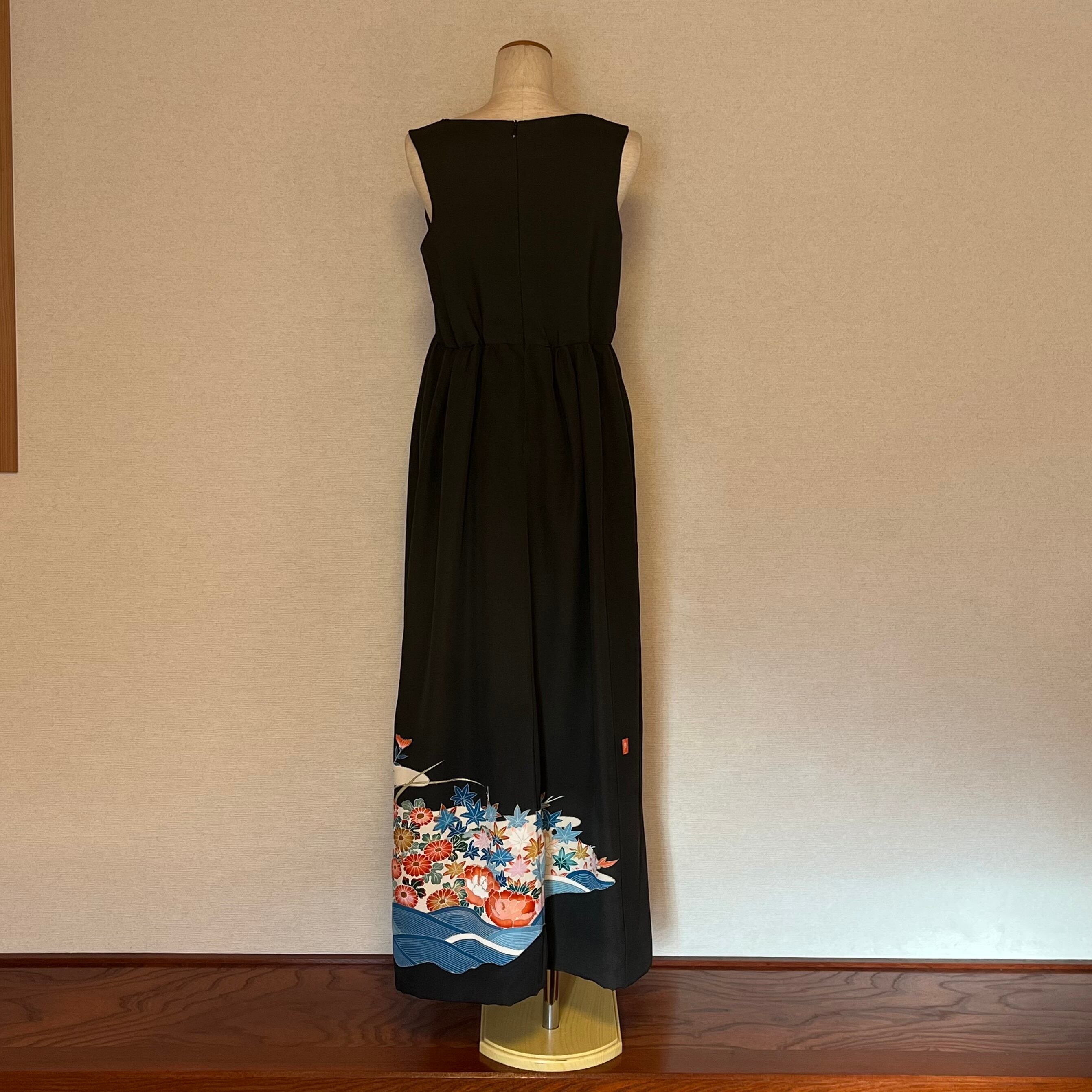 留袖ノースリーブリメイクドレス M〜L 牡丹菊花
