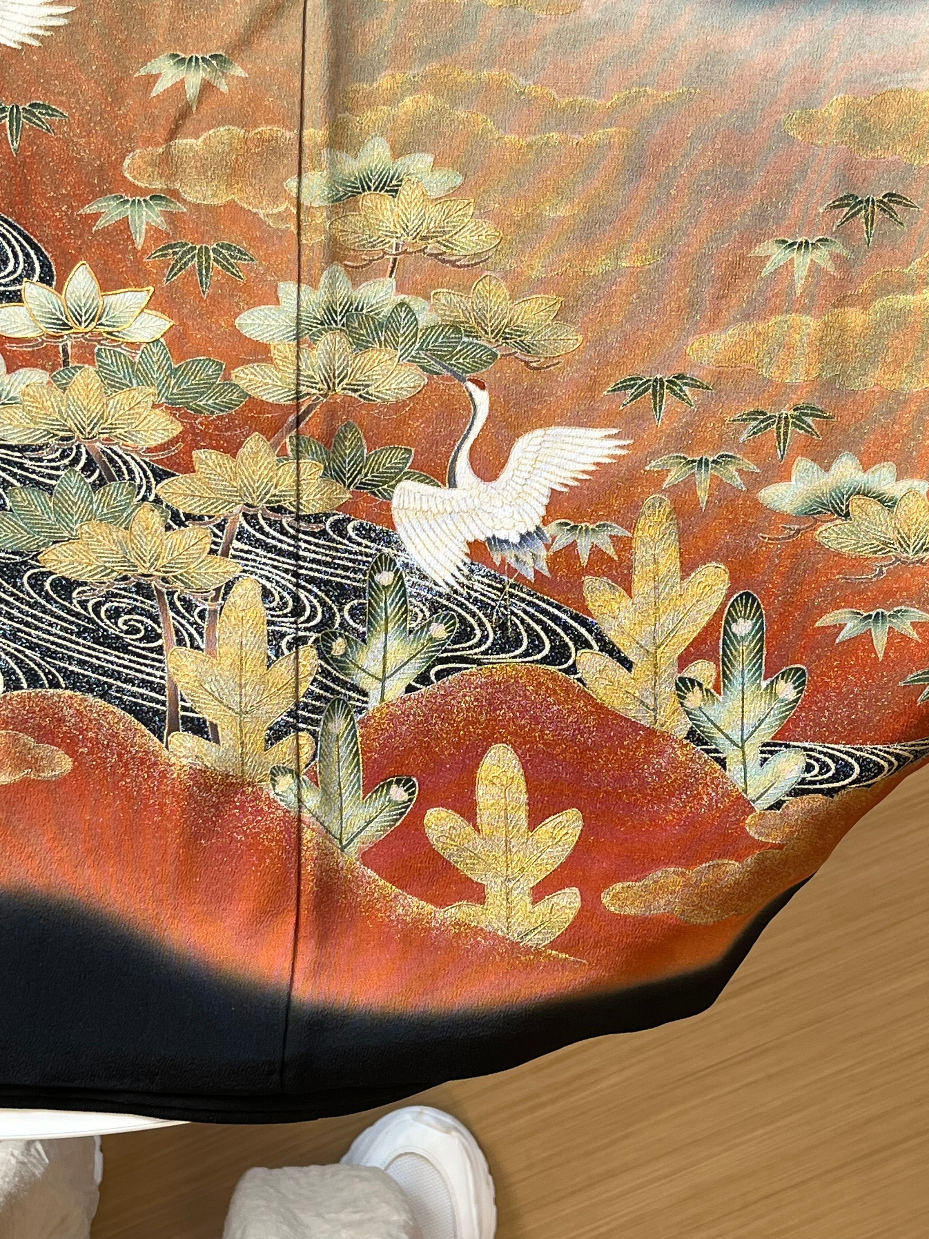 松竹梅と光琳流水文、立鶴、瑞雲の吉祥文様