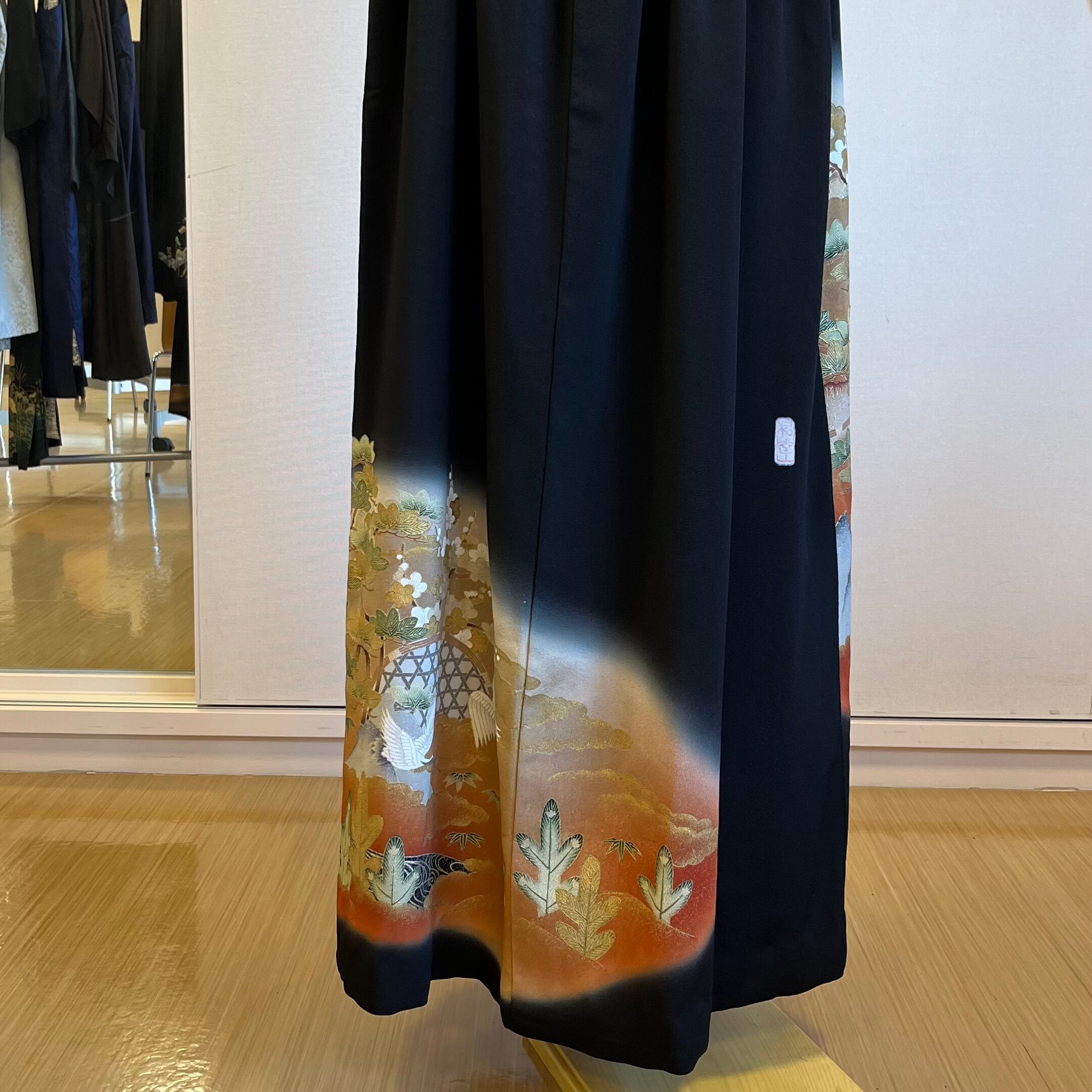 魔除けの籠目模様、が描かれており、幸せを祈り、手の込んだ作家もの逸品留袖より仕立てました。