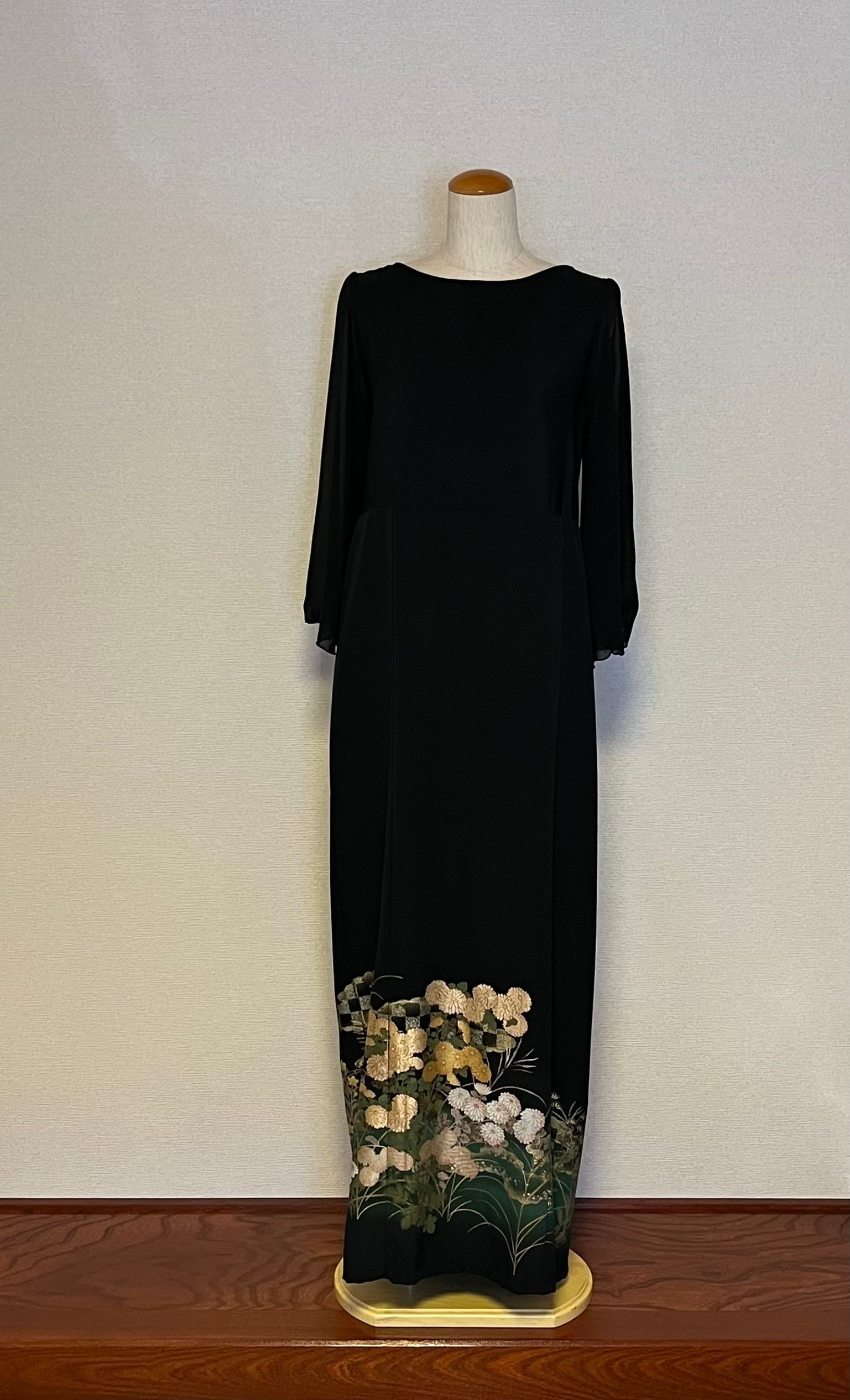 菊花 芒 桔梗 女郎花 雲とり 一松紋様があしらわれ 落ち着いた風情があります。