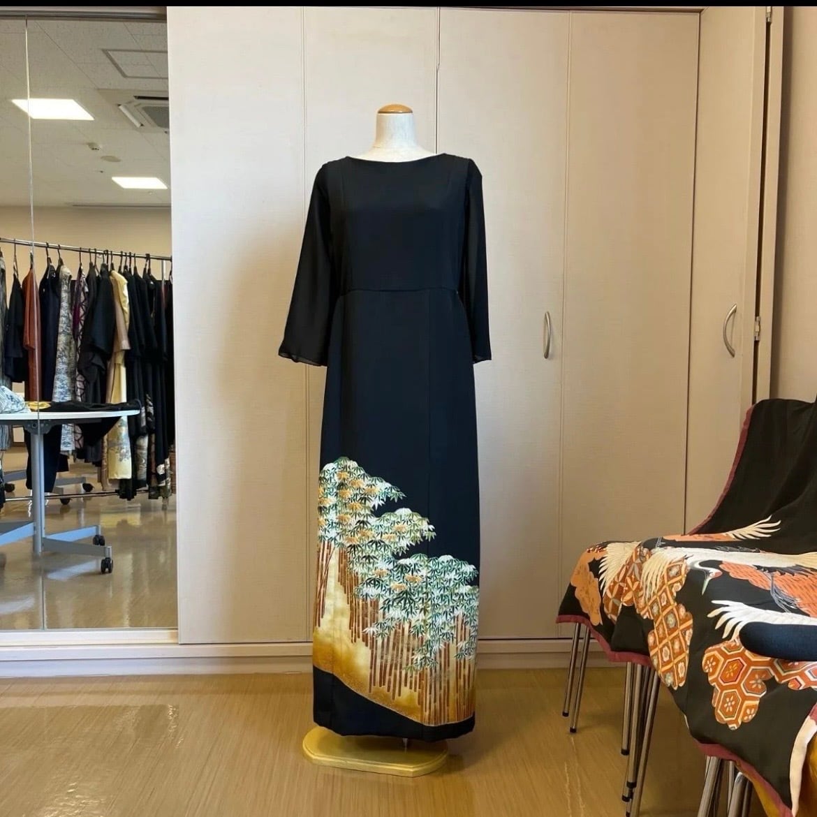 留袖リメイクドレス 金駒竹紋様 M〜Lサイズ