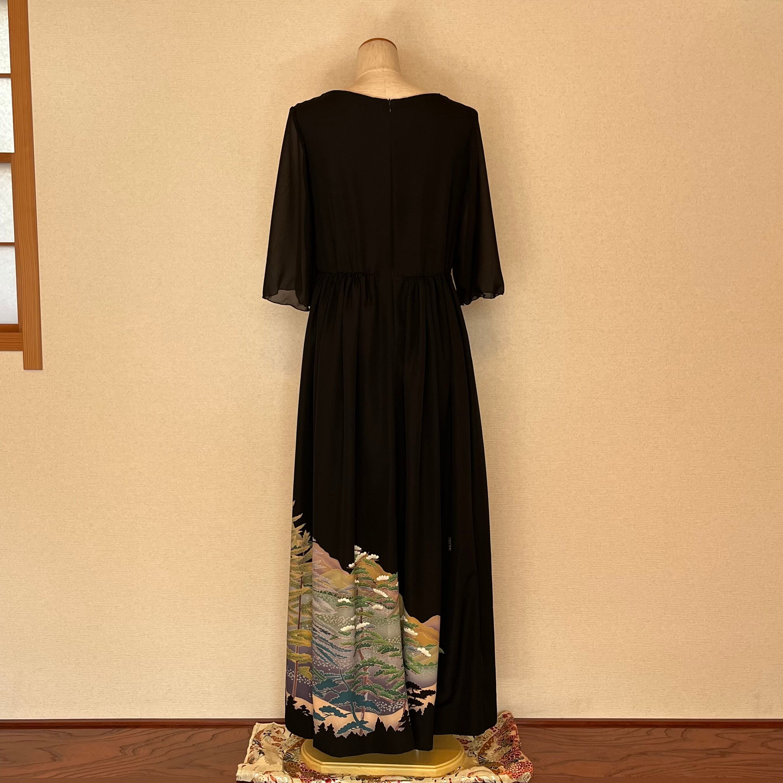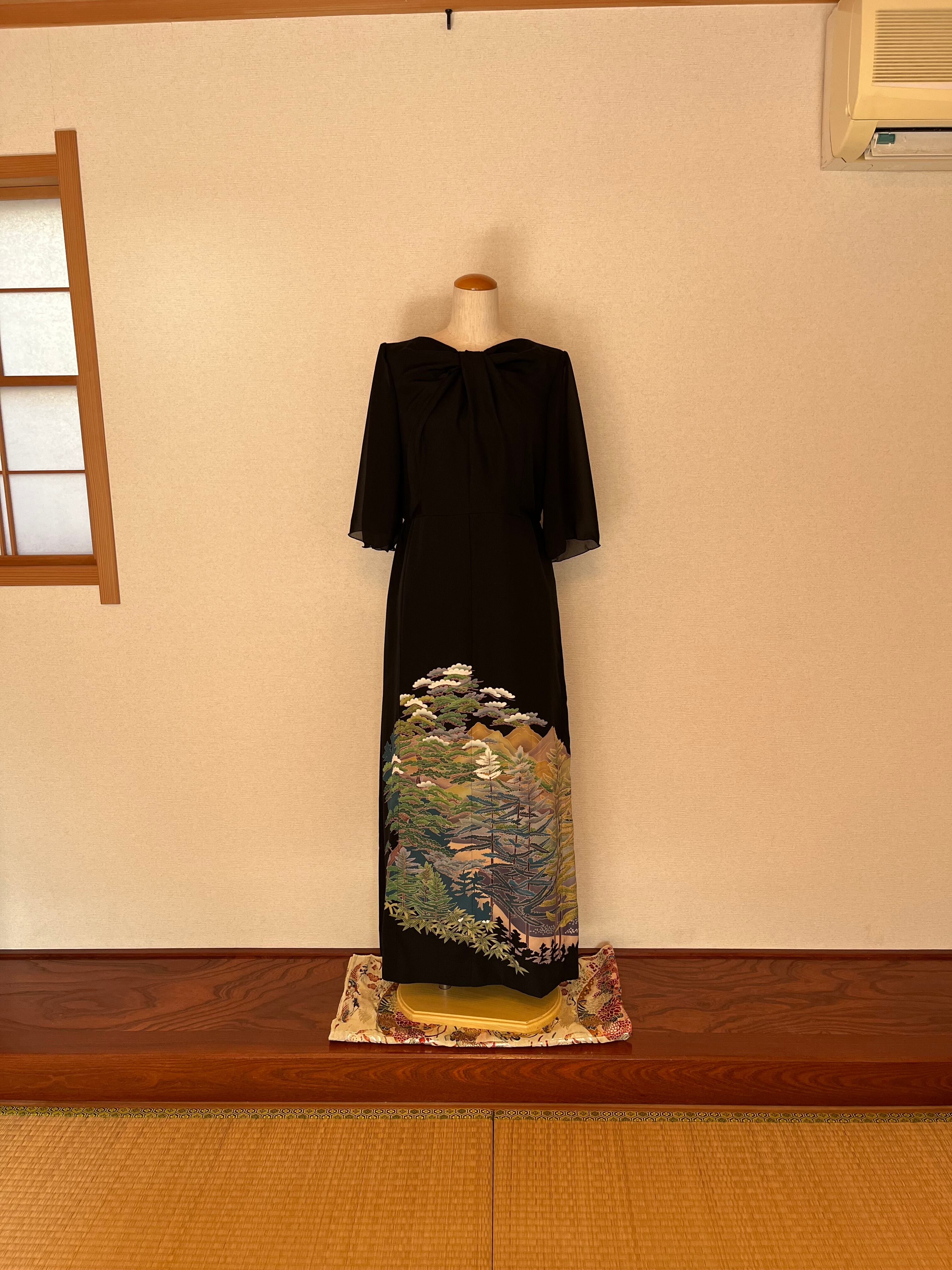 留袖クイックターンドレープドレス 作家留袖リメイク M〜L山水紋様