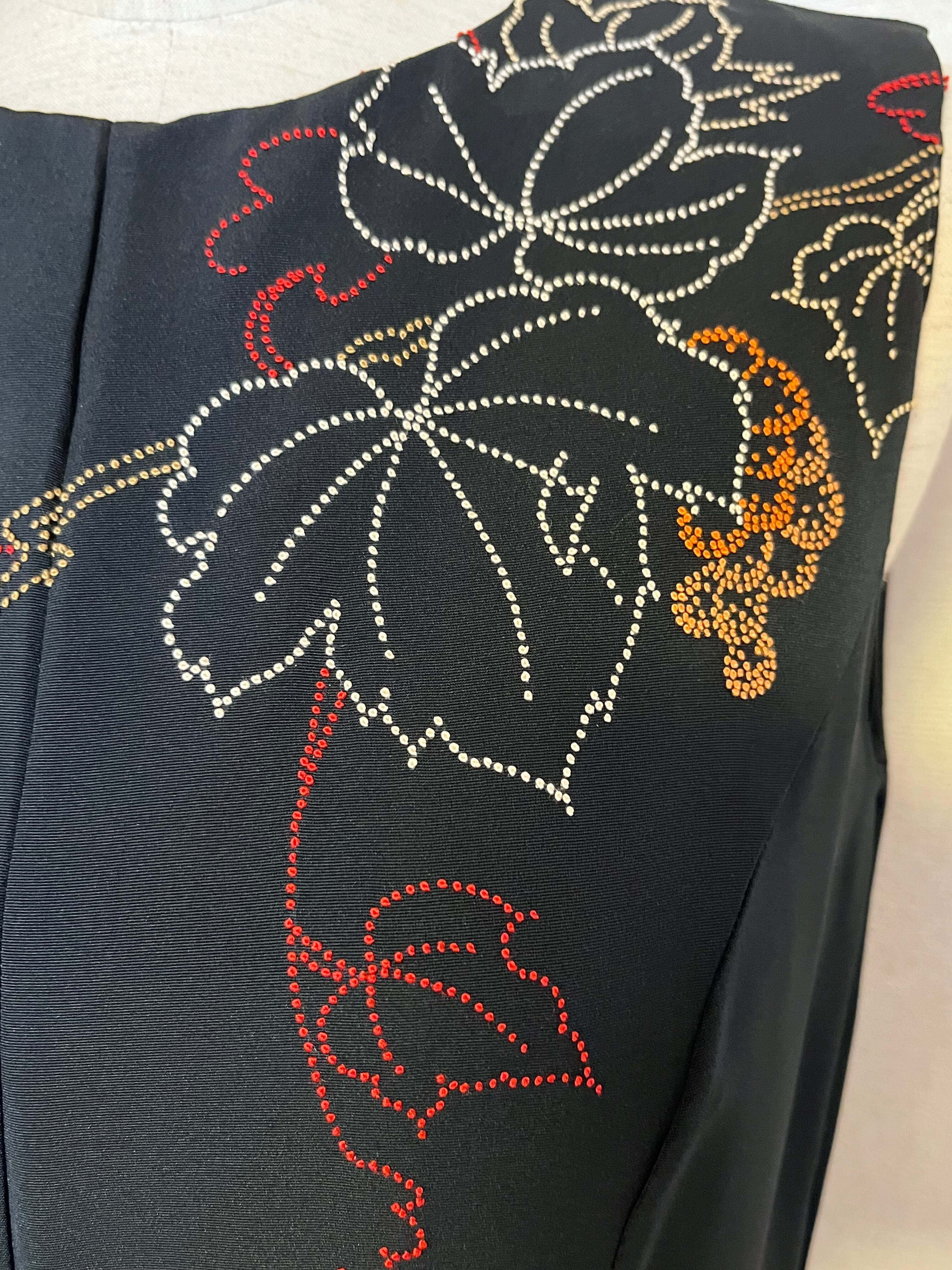 葡萄刺繍が施された黒羽織から、美しいワンピースが誕生しました。背中のコンシールファスナー開きで着脱も楽々。上品な葡萄刺繍が、エレガントな印象を演出してくれます。日常使いから特別なシーンまで、幅広いシーンでお楽しみいただける一着です。品のある装いを叶える、おすすめのアイテムです。