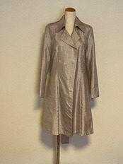 この雨ゴート反物より作られた薄ピンクのコートは、上品な銀ラメ入りがポイント。オシャレを楽しめる一着です。生地は防水性が高く、薄ピンクの色味は女性らしさを引き立て、どんなコーディネートにもマッチします。シルエットも程よいゆとりがあり、着心地も抜群です。