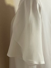 ジョーゼット裏綿100ニットのTシャツが新登場!チューリップ袖のデザインが女性らしさを引き立てる一枚です。ジョーゼット素材のしなやかさと裏綿100ニットの肌触りの良さを兼ね備え、快適な着心地を提供します。シンプルでありながらも、袖のチューリップデザインがアクセントになり、おしゃれ感を演出します。